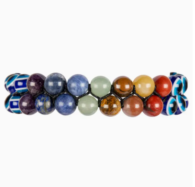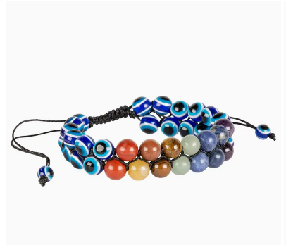 Adjustable Crystal Bracelet Including 100% Natural Crystal Gemstones and Evil Eye Protection beads.